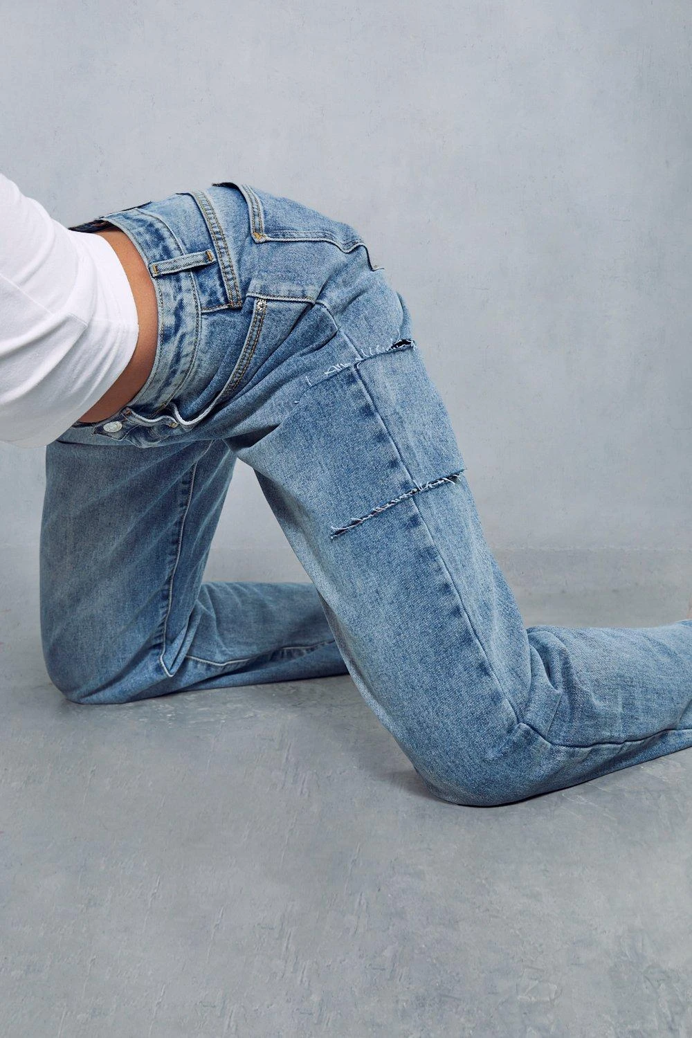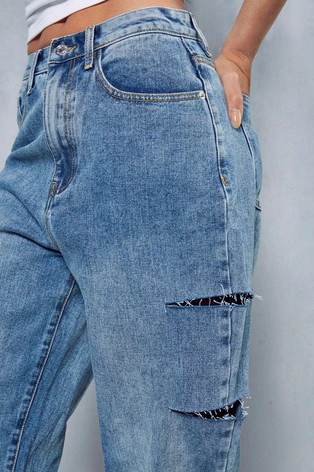 Straight Leg Rip Detail Baggy Jean